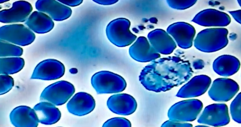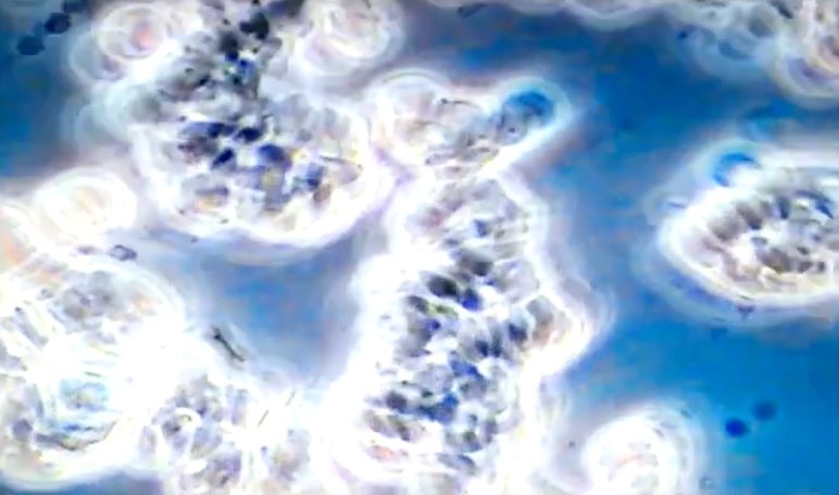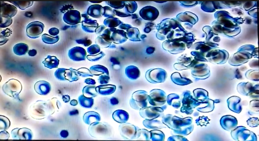 Shows subject's blood after it has been exposed to only 10 minutes of celluar EMF.